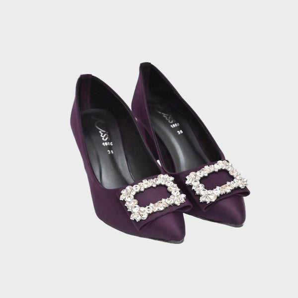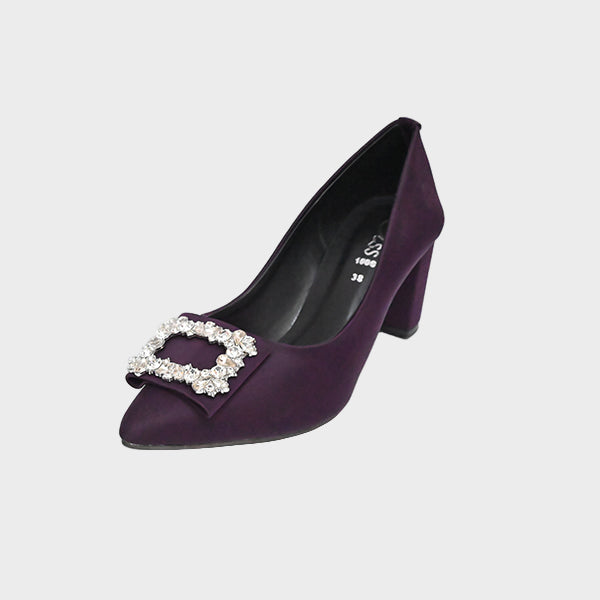 Make a bold style statement with these elegant plum-purple block heels, designed to add a touch of luxury to every outfit. The rich, deep shade paired with a striking crystal-embellished buckle creates a glamorous, high-fashion look. A supportive block heel and soft interior cushioning ensure comfort without compromising style—perfect for weddings, formal events, and evening outings.